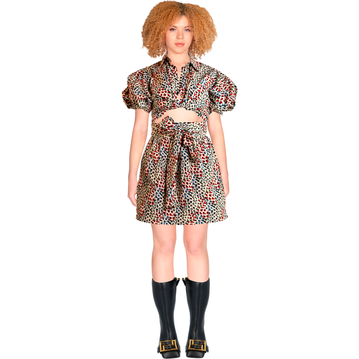The Russell Wrap Skirt has a a-line shaped and hits above the knee. The skirt has side pockets and a 3" waistband. X-Small skirt is approx. 20" in length from natural waist.